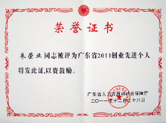 我集團(tuán)執(zhí)行總裁朱榮業(yè)先生等廣東省內(nèi)100名創(chuàng)業(yè)先進(jìn)個(gè)人榮獲“廣東省2011創(chuàng)業(yè)先進(jìn)個(gè)人”榮譽(yù)稱號。
